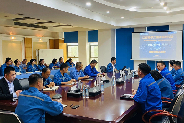近期,集團(tuán)“一體化項(xiàng)目”驗(yàn)收總結(jié)會(huì),在行政大樓舉行。集團(tuán)董事長(zhǎng)任樂天,上海聚致總經(jīng)理段會(huì)章,以及集團(tuán)物資、技術(shù)、信息等相關(guān)部門領(lǐng)導(dǎo)及項(xiàng)目組成員參加了本次總結(jié)會(huì)。新?lián)P子造船總經(jīng)理助理何明暉作為業(yè)務(wù)代表,對(duì)系統(tǒng)應(yīng)用情況進(jìn)行了介紹,集團(tuán)信息化負(fù)責(zé)人袁龍介紹了項(xiàng)目總體情況。
