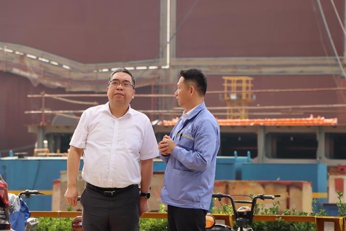 6月26日下午,太倉市委常委、太倉港經(jīng)濟(jì)技術(shù)開發(fā)區(qū)黨工委副書記、管委會副主任戚振宇調(diào)研揚子三井,集團(tuán)副總經(jīng)理、揚子三井總經(jīng)理宋書明介紹了當(dāng)前新船型研發(fā)、手持船型訂單、首制4萬立方LPG清潔能源運輸船建造進(jìn)度、技改提效內(nèi)部挖潛及未來3~5年企業(yè)發(fā)展規(guī)劃和前景等生產(chǎn)經(jīng)營情況。