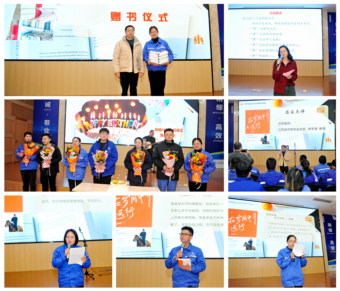 活動(dòng)中,高級(jí)歷史老師、國(guó)家二級(jí)心理咨詢師姚北平帶領(lǐng)大家進(jìn)行了《心有大我 強(qiáng)企有我 至誠(chéng)報(bào)國(guó)》為主題的“習(xí)語(yǔ)典讀”分享。來(lái)自集團(tuán)綜合管理部的多位員工,分享了近期閱讀《在歲月中遠(yuǎn)行》一書后,關(guān)于行走、關(guān)于閱讀和愛的意義,并結(jié)合生活、工作實(shí)際暢談收獲感悟。江蘇省作家協(xié)會(huì)會(huì)員徐學(xué)波老師代表市委宣傳部,向我司捐贈(zèng)一批圖書,助力企業(yè)充實(shí)職工書屋、推廣閱讀角等陣地建設(shè),更好地搭建閱讀交流平臺(tái)。結(jié)合大家的讀書分享,徐老師還作了延伸點(diǎn)評(píng)。