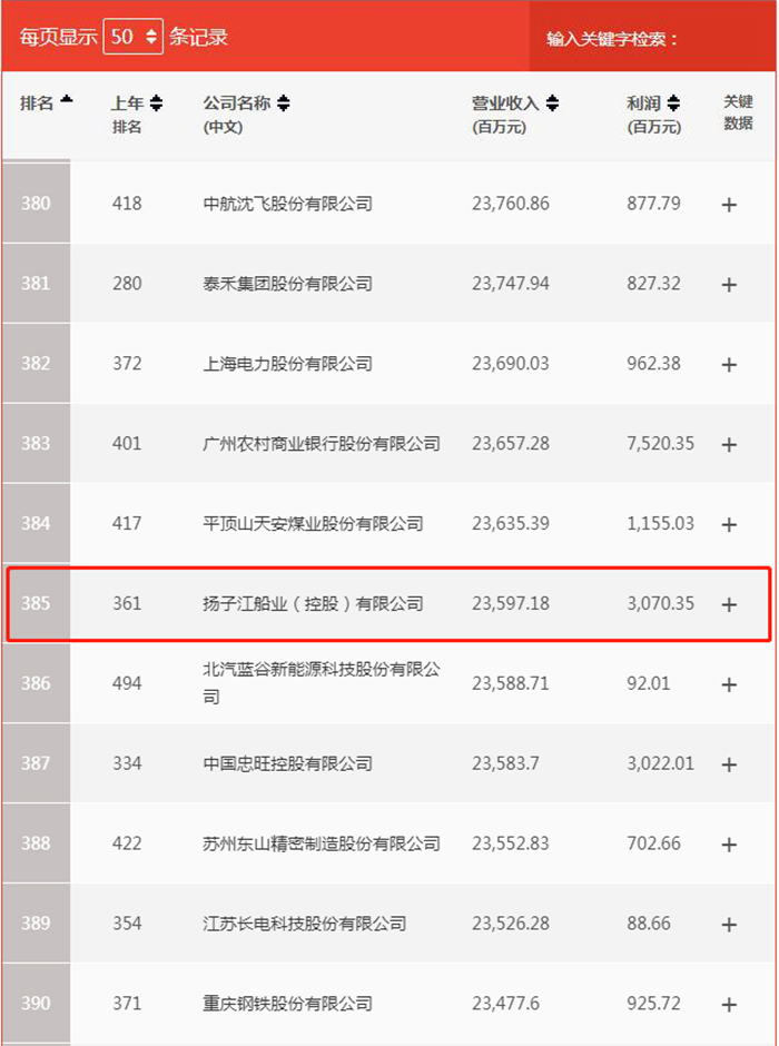 7月27日,財富中文網(wǎng)發(fā)布了2020年《財富》中國500強排行榜?!敦敻弧分袊?00強排行榜,考量了全球范圍內(nèi)最大的中國上市企業(yè)在過去一年的業(yè)績和成就。本排行榜覆蓋范圍包括在中國境內(nèi)外上市的所有中國公司,所依據(jù)數(shù)據(jù)為上市公司在各證券交易所正式披露信息。該榜單由《財富》(中文版)與中金公司財富管理部合作編制。我集團以營業(yè)收入235.97億元排名第385位。