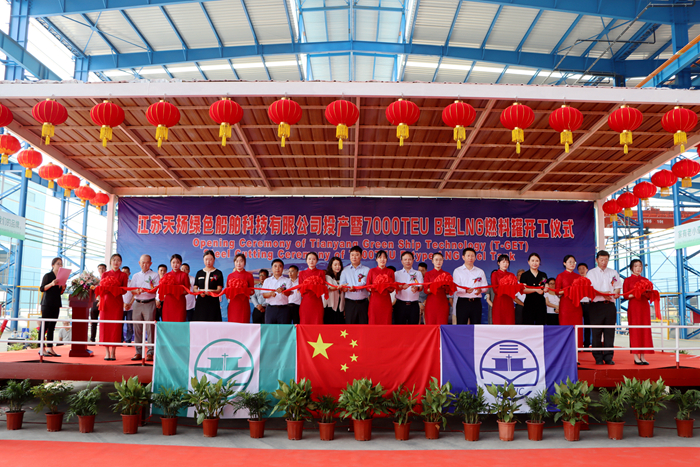 On August 16th,Jiangsu Tianyang Green Ship Technology Co., Ltd. (hereinafter referred to as"T-GET"), a wholly-owned subsidiary of Yangzi Mitsui ShipbuildingCo., Ltd. of our group, was put into operation and the commencement ceremony ofB-type LNG fuel tank for 7000TEU dual fuel powered container ships washeld in Taicang.