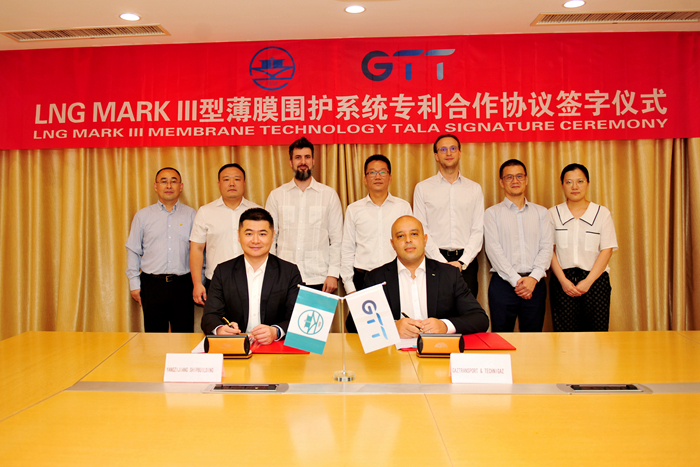 On September 8th,Yangzijiang Shipbuilding Group and GTT (Gaztransport& Technigaz) of France hassigned a technical assistance and license agreement on Mark III membrane containment technology forthe LNG fuel tanks. Annan Issaoni, General Manager of GTT China, Ren Letian,chairman of our group, attended the signing ceremony and conduct in-depthfriendly exchanges. This marks that our Group has officially obtained thequalification certification of GTT, and has the qualification to build largeLNG carrier with GTT Mark-III membrane enclosure system. As a result, our groupbecame the first private shipbuilding enterprise in China shipbuilding industryto obtain this qualification.