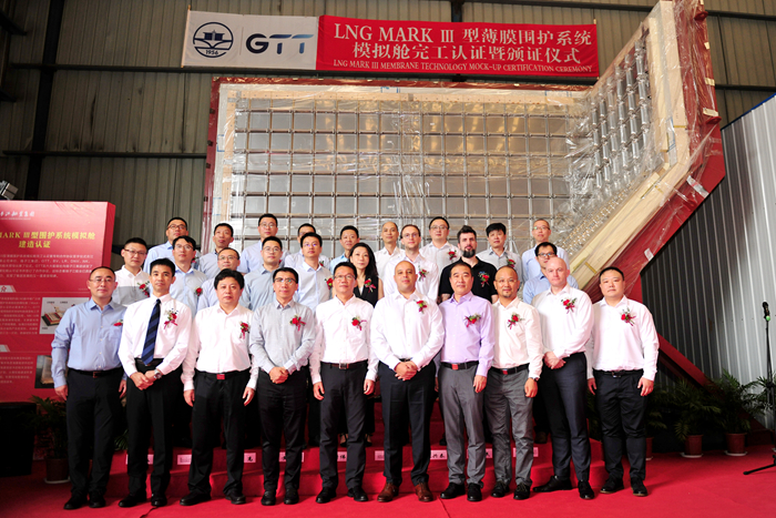 GTT Mark-III LNG shipmembrane enclosure simulation module qualification process completed and licenseaward ceremony was held in Yangzi Xinfu. Annan Issaoni, General Manager of GTTChina, Song Aimin, General Manager of ABS Classification Society Central China,Christophe VAES, Manager of BV Classification Society New Shipbuilding Division,Cai Gao, Director of CCS Jiangyin Office, Huang Jin, Global Senior VicePresident of DNV Classification Society, Shi Xingtai, General Manager of LRGreater China and Masakatsu TSURU, General Manager of NK Shanghai Branchattended the ceremony. Yang Xueyan, General Manager of Yangzi XinfuShipbuilding Co., Ltd., received the qualification certificate from AnnanIssaoni, General Manager of GTT China on behalf of the company. Zhou Kewei, DeputyGeneral Manager of our group, received the qualification certificates issued byABS, BV, CCS, DNV, LR and NK classification societies on behalf of our company.