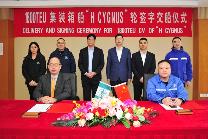 At 8:18 am of January 28, Yangzi Changbo successfully delivered the first 1800TEU Container Ship "H CYGNUS" to Huayuan Shipping Company.