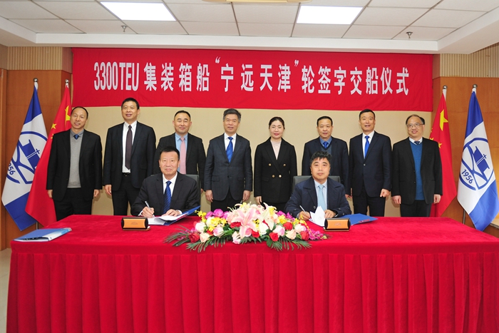 On the naming day, Mr. Chen Jating, Deputy General Manager of Ningbo COSCO, and Mr. Du Chengzhong, Deputy General Manager of YZJ Group and General Manager of New Yangzi Shipbuilding, signed the delivery documents on behalf of the two parties under the witness of all the guests.
