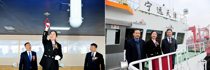 On December 13th, our group and Ningbo COSCO held a grand naming and delivery ceremony for the new vessel at the new Yangzi Shiphipyard wharf. Ms. Lin Qiao named the new vessel "NINGYUAN TIANJIN" and threw champagne. "NINGYUAN TIANJIN" is a special container ship for domestic trade specially designed and built by Yangzi Shipbuilding Group to meet the demand of the shipowner for offshore business in Ningbo, with a length of 197 meters, a breadth of 34.8 meters, a depth of 19.2 meters, a design draught of 12.5 meters, a total intake of 3,318 TEUs, and a DWT of nearly 58,000 tons.